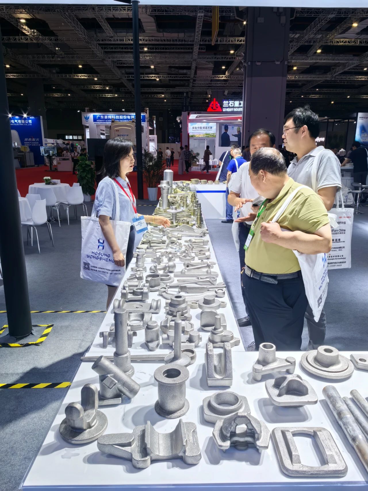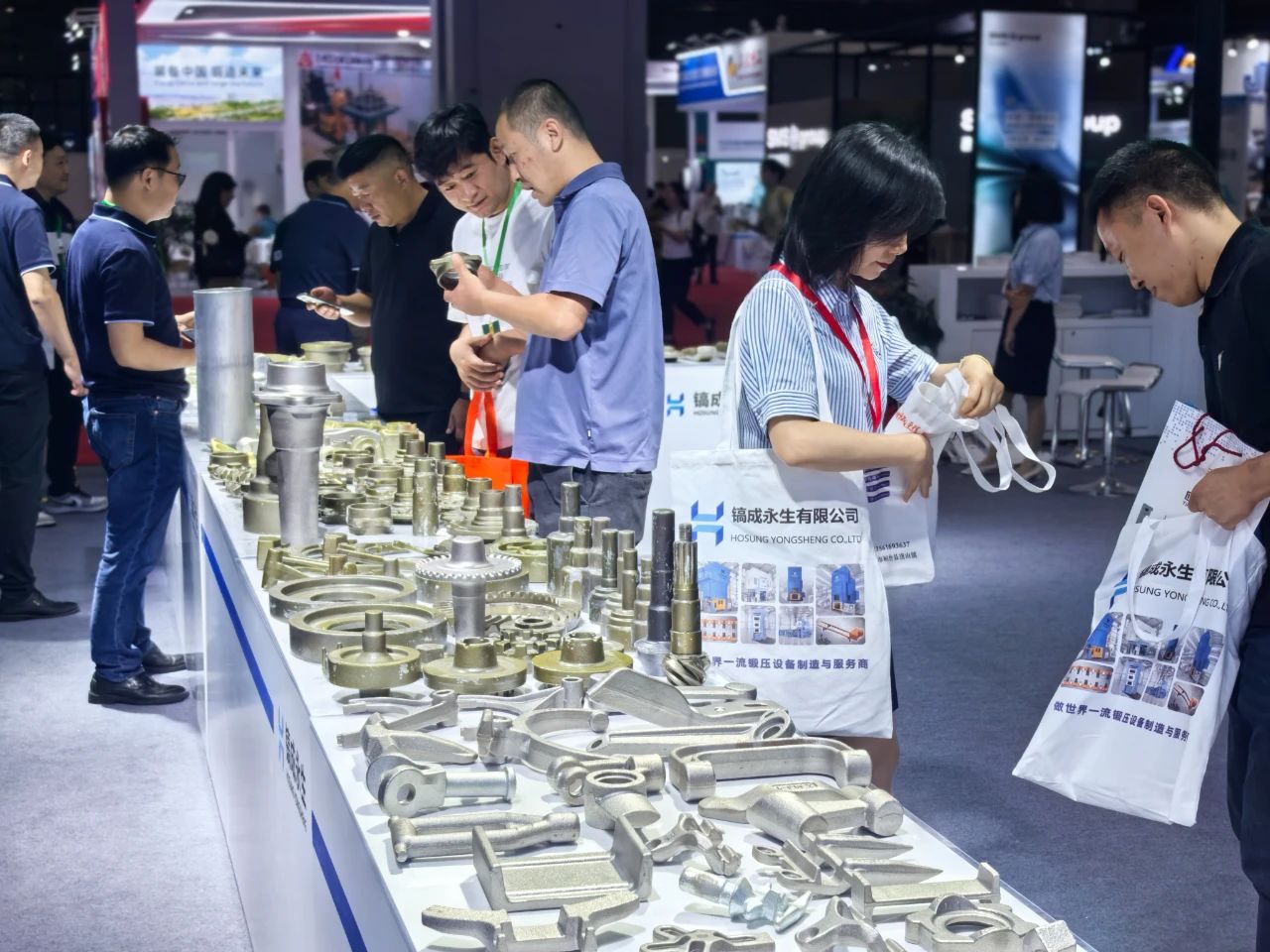 一進入展會現(xiàn)場,便能看到鎬成永生那寬敞而醒目的展位。展位上,擺放著各類設備模型,這些模型直觀地展示了公司產(chǎn)品的精密構造和先進設計。從HDP、HFP系列機械式熱模鍛壓力機,到HCL/HLMHKLP/系列多桿驅動機械式熱、溫/冷鍛壓力機,每一款設備模型都吸引著觀眾駐足研究。同時,周圍陳列著由這些設備生產(chǎn)出來的各種零部件,產(chǎn)品涵蓋多個領域,充分展示了鎬成永生設備的廣泛適用性和卓越生產(chǎn)能力。