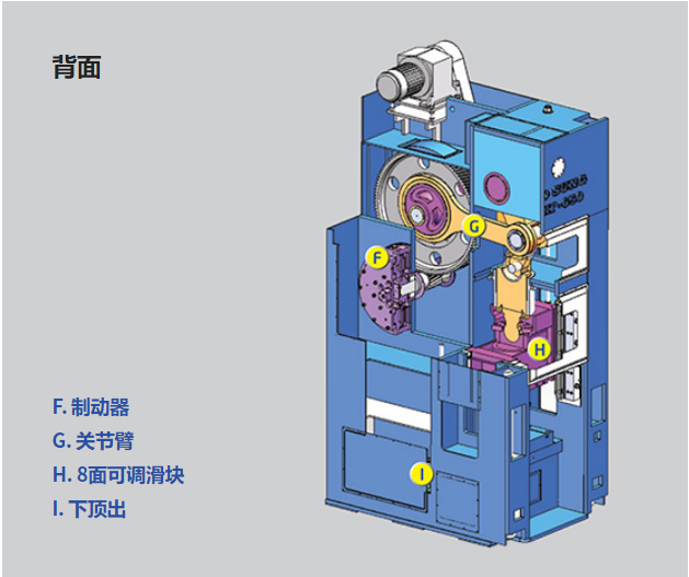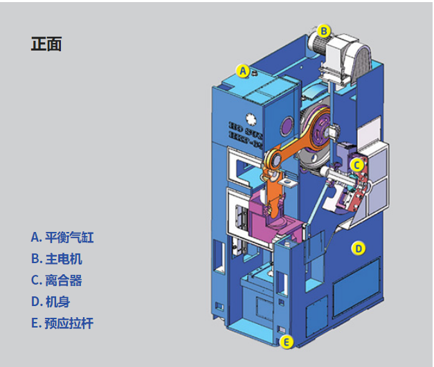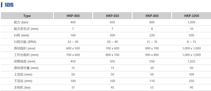 HKP冷鍛壓力機(jī)系列是以肘桿式機(jī)構(gòu)方式驅(qū)動(dòng),因此滑塊速度在 下止點(diǎn)附近放緩呈現(xiàn)獨(dú)特的滑塊運(yùn)動(dòng)曲線,不僅適合生 產(chǎn)精整、精壓等精密壓縮加工,也適合在低噪音、低震 動(dòng)下生產(chǎn)冷鍛產(chǎn)品的壓力機(jī)。